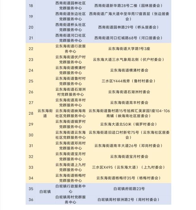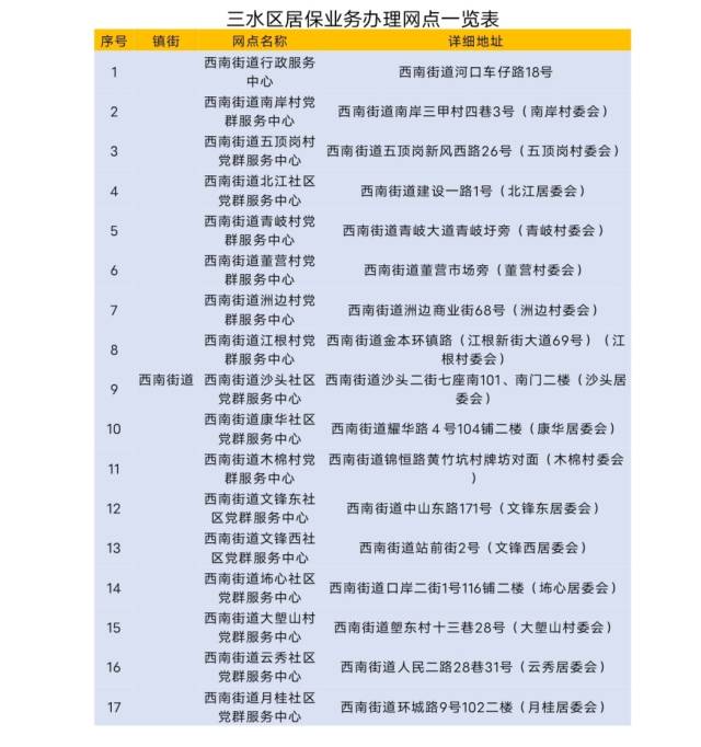 三水区居保业务办理网点一览表。通讯员供图