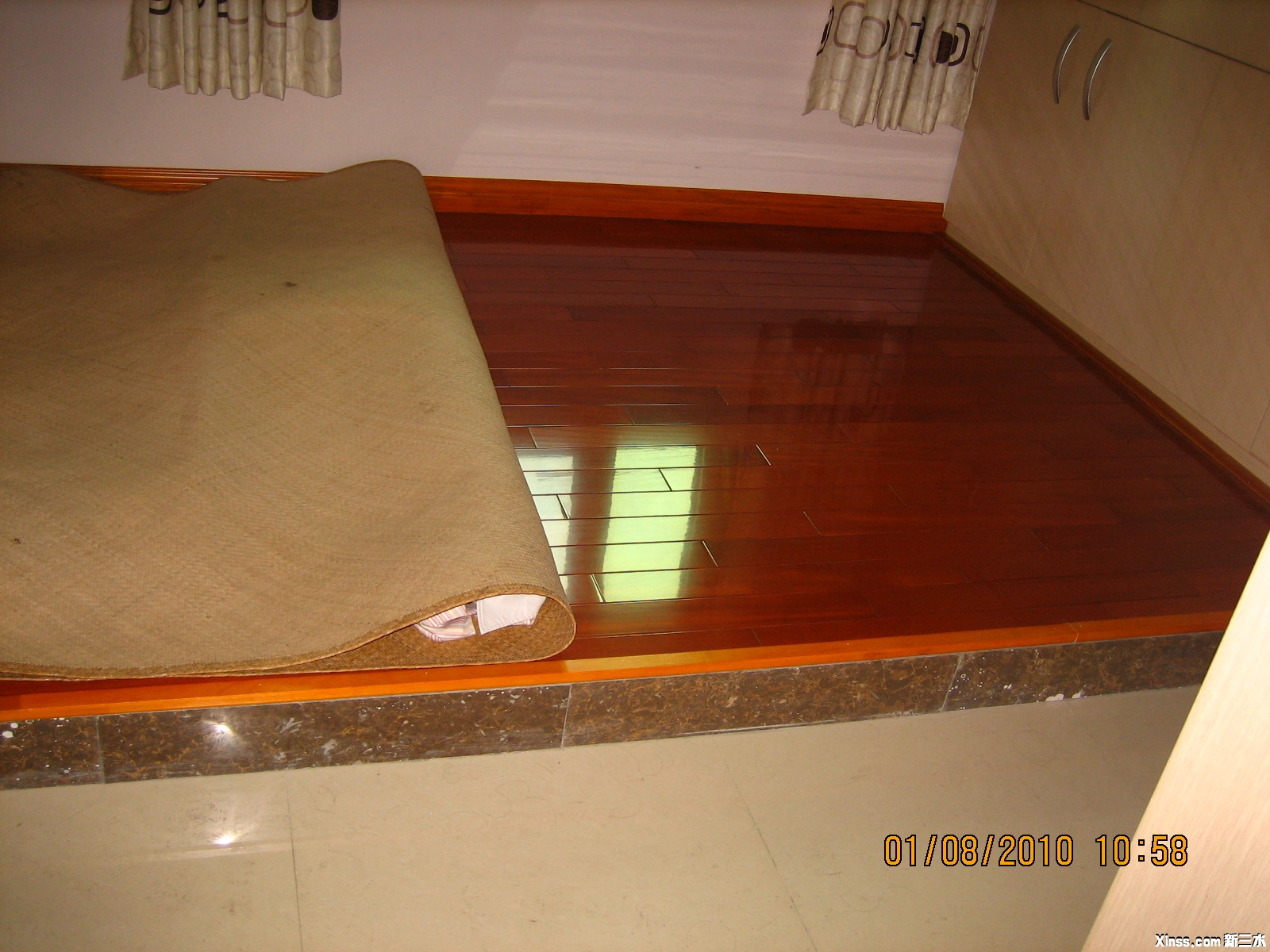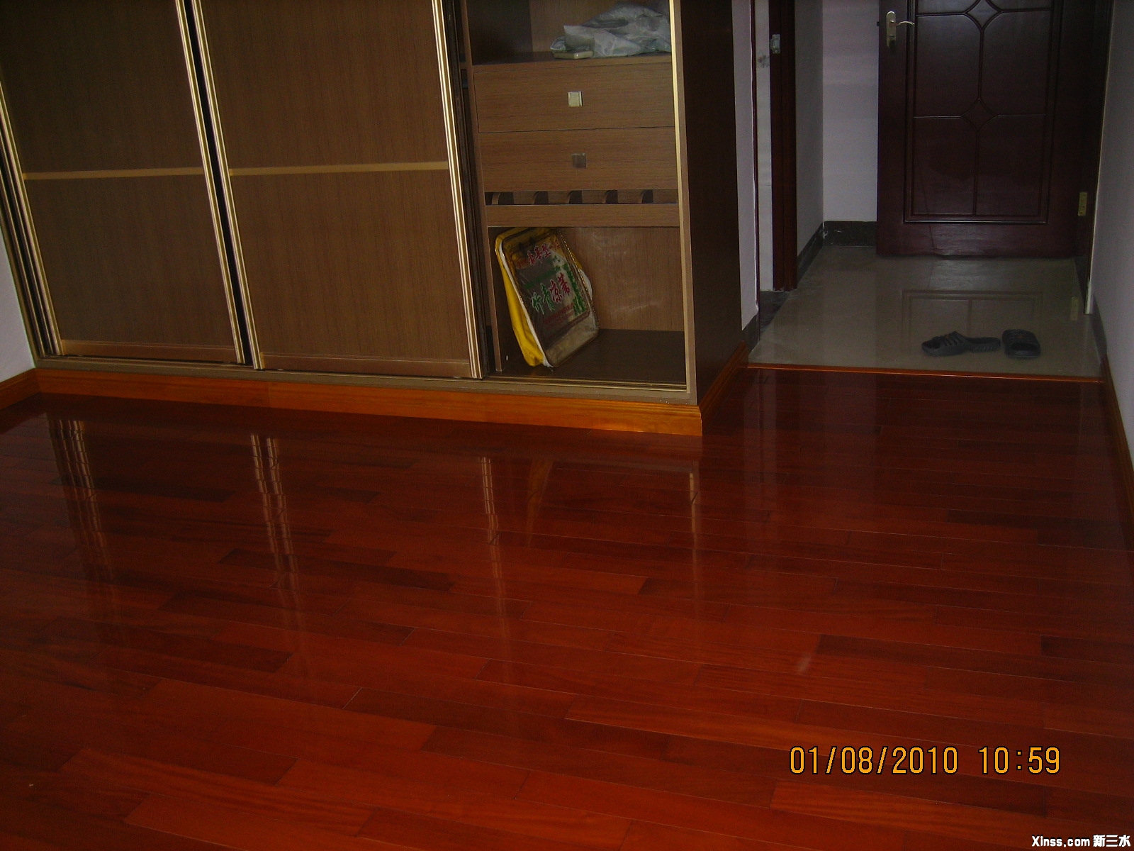 看上去很光亮,这是打了精油的原因。这还有个小插曲,安装完地板后,迎客松话有次打蜡送,还是佛山专业公司过来打的。一听,心想有甘着数?打扫完卫生后,电联清洁公司,约在周日上门。很快,二十分钟左右就搞好了,看上去的样子也挺专业的。做完之后,就推销地板精油,买二瓶送一瓶,还送地拖。共298元。哇,原来醉翁之意不在酒,说得有点心动,但成300百大元,还是推了他,心中记住了精油和地拖的品牌型号,上淘宝一查,这个涤太太的精油,一般是75-78元一瓶,买两瓶送一个地拖。有间TB店做特价,74.88元,买二送地拖还包邮,共花149.76元,闻说这木地板平时要侍候它,每隔二十多天吧,就要上一次精油,上它个一年后,就可以用水拖地。 |